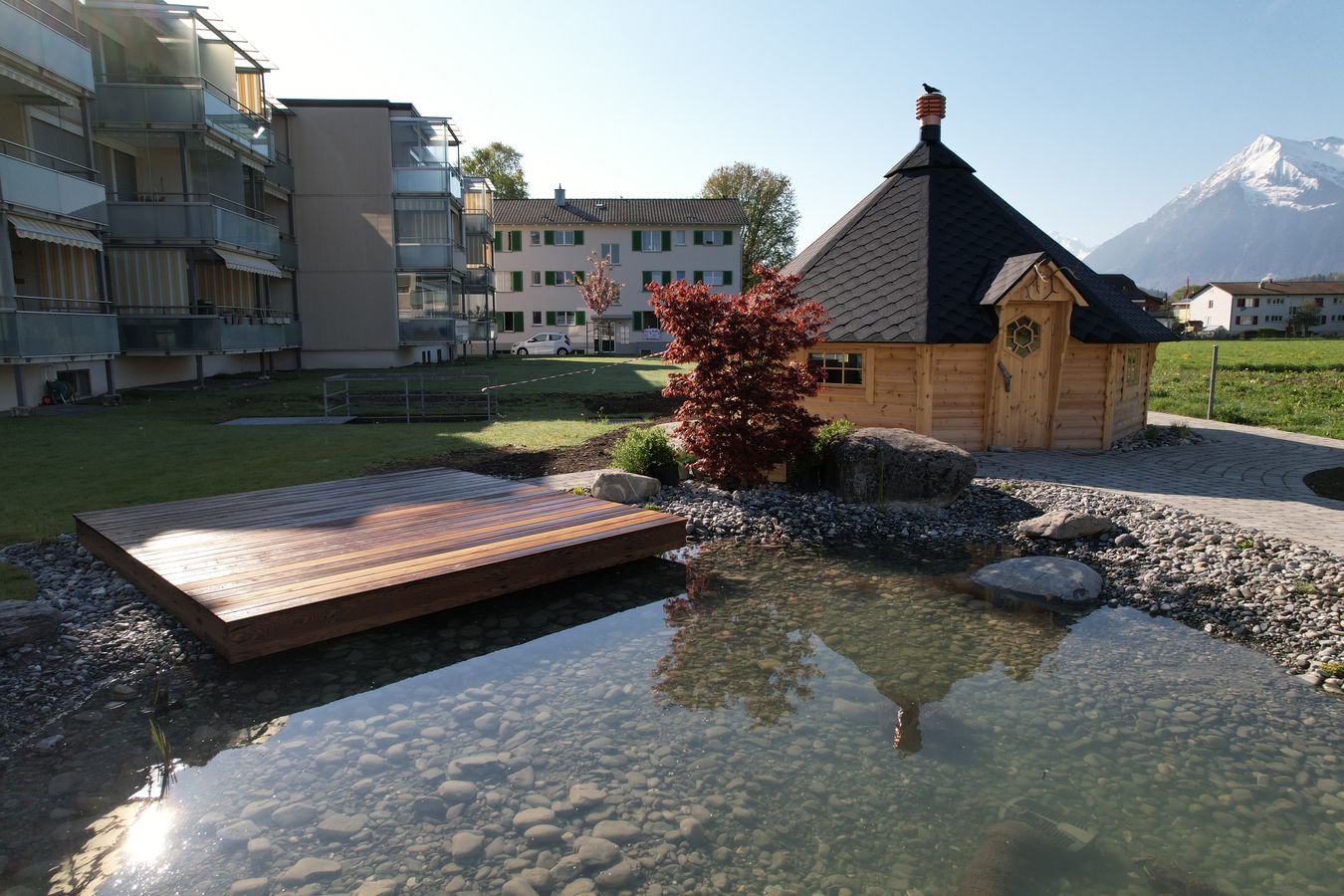 Na das muss man sich erstmal auf der Zunge zergehen lassen; eine Wohnbaugenossenschaft wird zum trendigen Gastgeber. Wie wahr - das darf auch gesagt werden - dies war sicherlich eines unserer liebsten Herzensprojekte bislang. Grillieren war gestern, heute wird grilliert mit Stil. Völlig unabhängig von Wetter und Temperatur kommt in der gemütlich eingerichteten Hütte die gute Stimmung von alleine auf. Auch kulinarisch kommt in der Hütte keine Langeweile auf. Ob grillieren von Fleisch, Fisch oder Geflügel, Raclette oder Fondue, Pizzas, Risotto oder Rösti, … der Fantasie sind keine Grenzen gesetzt. Oder wie wäre es, den Abend ganz einfach gemütlich am Feuer sitzend zu geniessen?